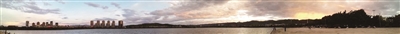 日落时分,来到湖泉生态公园,踩在柔软的沙滩上,惬意的吹着凉爽的风。此时天空左方呈现粉红色,正对面天空是紫色的,右方则有一道神奇的光穿透云层,平生第一次看到不同颜色的云出现在同一片天空,马上用手机拍摄下这一画面。低头的瞬间,再抬起头来,只见天空已剩下深蓝色和墨色,此时夜幕降临了。神奇的大自然赋予了我们源源不断的灵感和无穷无尽的想象力。