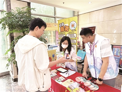 沟通会现场,和平街街道总工会向广大一线职工宣讲北京市工会第十五次代表大会精神。同时,该街道总工会将“职工沟通日”“工会宣传日”和“夏季送清凉”相结合,现场摆放宣传海报,以及新版工会组建、入会宣传等材料,为前来咨询的职工发放宣传折页,并介绍和平街街道总工会职工服务及职工活动的开展情况,同时为职工讲解工会会员可享受的权益,现场指导职工扫码入会。