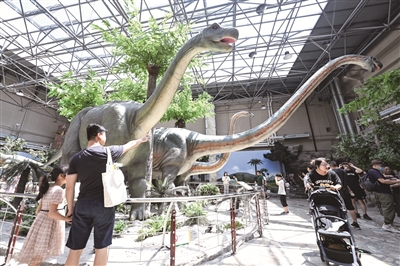 暑期到来,本市文博场馆迎来客流高峰。为最大限度满足观众参观需求、提升参观体验,热门场馆推出了延时、错时开放措施。游客可以畅游文博场馆,享受“延长”快乐。图为游客在国家自然博物馆参观。