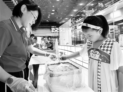 同样代表北京文化特色的老字号企业,北京稻香村深度挖掘二十四节气概念,每个节气都会推出与之相对应产品,深受消费者关注。今年,北京稻香村对大暑消暑糕进行了全面升级,新款糕点以绿豆糕和茯苓为主要原料,清新不腻,清凉消暑。孙妍 摄