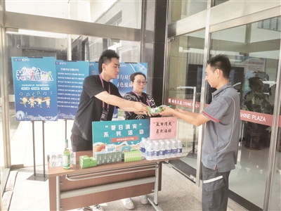 近日,石景山区古城街道领秀商务楼宇工作站联合街道工会,为辖区网约车司机、快递小哥等送上“夏日清凉”。入伏以来,领秀商务楼宇工作站在每个楼宇大厅内设立站点,配备冰镇饮品和防暑药品,同时在“京东分拣点”开展了义诊和剪发服务。