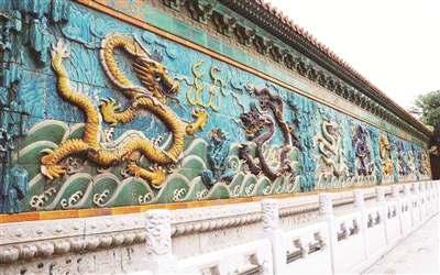 九龙壁位于故宫皇极门前,建于乾隆三十八年(1773年),是一座长20.4米,高3.5米的高大琉璃照壁,九条巨龙跃然于其上,且分置于五个空间,因为阳数之中九是极数,五则居中寓意“九五之尊”。