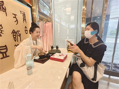 近日,北京稻香村“零号寻宝馆”在隆福寺前街开业,这是北京稻香村零号店的第三家分店。该店不仅延续了零号店现烤糕点等特色服务,还将传统食器、食礼以创新形式呈现在顾客面前。同时,到店顾客还可以换上汉服学习点茶技艺,感受中国传统文化的魅力。