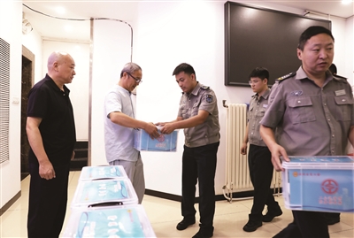 近日,海淀区总工会一行来到海淀保安分公司开展“工会送清凉 防暑保安康”慰问一线保安员活动,为坚守岗位的保安员发放了防暑降温慰问品。在与保安员交流中,慰问团一行充分肯定了保安员高温天气下坚守岗位的奉献精神,并叮嘱大家劳逸结合,确保身心健康。