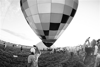 第22届“俄罗斯天空”热气球节于8月4日至12日在俄梁赞州举行,超过30支团队参加本届活动。图为人们观看热气球充气。