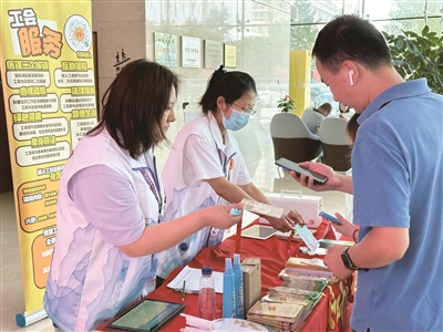 近日,朝阳区和平街街道总工会在怡和阳光大厦开展“清凉送职工”主题沟通日活动,将“送清凉”与“会员日”相结合。活动中,工会工作人员携带小风扇、驱蚊水等清凉物品送给现场职工,并为前来咨询的职工发放工会宣传折页,介绍工会服务项目,指导职工扫码入会。本报记者 刘欣欣 摄影报道