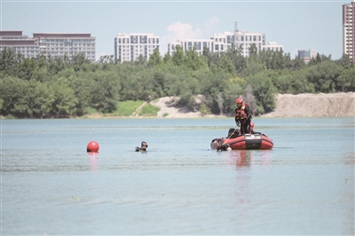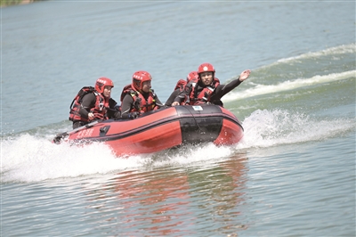 在园博园宽阔的水面上,一位“游人”不慎落水,正在呼救。岸边消防救援人员即刻行动,迅速将水域救援机器人放置水中展开施救,“救援”取得成功。这是日前北京消防救援人员水域救援实操演示中的一幕。