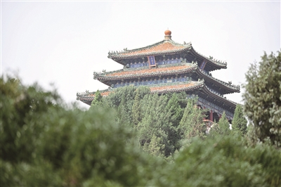 景山为中轴线至高点,有“京华览胜第一处”之美誉。山之五峰建有五座亭子,自东向西依次为周赏亭、观妙亭、万春亭、辑芳亭、富览亭。每座亭内曾供奉一尊佛像,故称“五方佛亭”。
