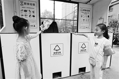 日前,丰台区南苑街道开展暑期垃圾分类小志愿者“守桶”行动。社区小朋友戴上绿袖标,在小区垃圾桶站前引导前来投放垃圾的居民正确分类,通过有效的督促引导,让更多居民行动起来,养成垃圾分类的好习惯,不断激发居民参与垃圾分类的积极性和自觉性。本报记者 曹立栋 通讯员 史莉 摄影报道