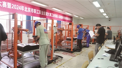 操作台前,选手们手持工具,或调试机械电气系统,或搭建虚拟系统进行仿真操作,工业机器人在他们的操作下灵活自如地完成一个个精细的动作。这是经开区总工会承办的北京市第六届职业技能大赛暨2024年北京市职工职业技能大赛工业机器人系统操作竞赛初赛上的场景。