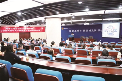 近年来,经开区总工会注重发挥新时代工会思想政治引领和教育引领作用,经过职工夜校——职工学堂——亦智学堂的迭代升级,打造出经开区实施职工素质工程的教育品牌。首都师范大学马克思主义学院李宏伟教授以《学习领悟两会中关于新质生产力的思想内涵》为题的开班第一讲,就吸引区域内各工会服务站负责人、基层工会主席及职工代表线上线下近500人共同学习。