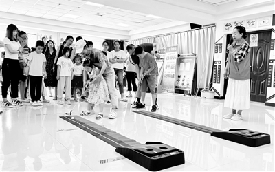 近日,石景山区苹果园街道东下庄社区开展“‘童’心协力 其乐融融”亲子运动嘉年华。活动设置亲子贪吃蛇、亲子高尔夫、俄罗斯方块等游戏项目。游戏环节气氛热烈,家长和孩子们默契配合,有效增进了亲子感情。本报记者 曹立栋 通讯员 李文畅 摄影报道