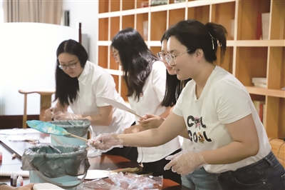 近日,北京公交集团资产管理分公司工会组织女职工开展漆扇制作活动。将空白的扇面沉入染料桶,随后摇动、旋转、轻推扇柄……活动中,职工们发挥着想象力,精心打造着绚丽的漆扇作品,感受着制作的乐趣。本报记者 盛丽 通讯员 俞汶君 白政文 摄影报道