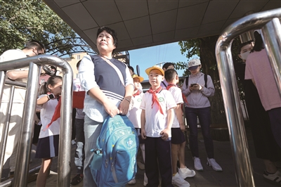 9月2日7点40分,在昌平区回南家园公交场站门口,已经有不少家长带着孩子在站台上候车,他们将搭乘7点45分发车的464路区间车“通学专线”,前往天通苑学校上学。