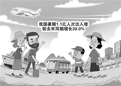 随着互免签证、144小时过境免签等利好政策的实施,不少中外游客选择在暑期开启“双向奔赴”的跨境游旅程。国家移民管理局3日通报,今年暑期(7月至8月)全国边检机关共计保障1.1亿人次中外人员出入境,日均177.9万人次,较去年同期增长30.0%,环比5、6月份增长13.0%。单日出入境最高值为8月24日的223.7万人次,达到历史峰值的97.2%。(9月3日 新华社)□朱慧卿
