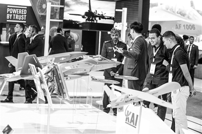 中航技进出口有限责任公司、中国精密机械进出口有限公司、航天长征国际贸易有限公司、中国北方工业有限公司和中国商用飞机有限责任公司等亮相本届航展。图为人们在埃及阿拉曼举行的埃及首届国际航展上参观。