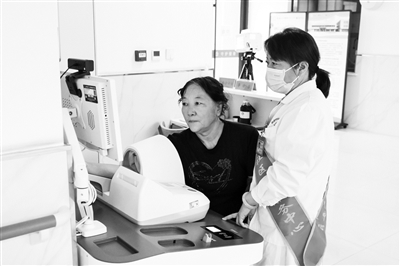 9月4日,一名居民在乌海市海南区拉僧仲社区卫生服务中心测量血压。近年来,内蒙古自治区乌海市积极推进一刻钟便民生活圈建设,通过盘活社区闲置资源、打造居民服务特色品牌等措施,为社区居民提供医药、养老、文化等方面的服务,给居民生活增添便利,提升居民幸福感。目前,乌海市已建成14个一刻钟便民生活圈。(9月5日《工人日报》)