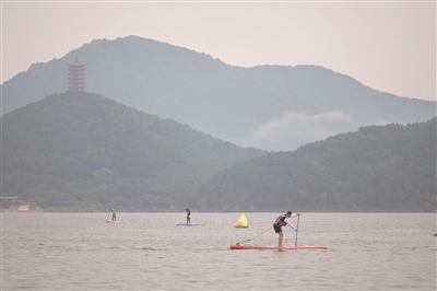 9月8日,第三届北京桨板公开赛在平谷区金海湖风景区鸣笛开赛。本届比赛设200米竞速赛、6公里拉力赛、龙板竞速赛3个项目,吸引了来自京津冀地区的近200名桨板爱好者参赛,其中选手年龄最大的60岁,最小的6岁,大家以桨会友、逐浪拼搏,尽情享受水上运动的魅力。