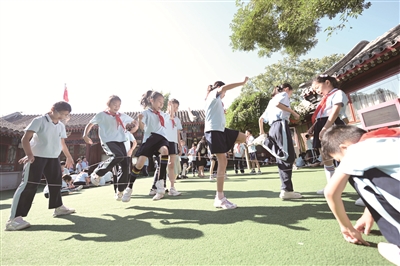 黑芝麻胡同小学德育副校长康昕介绍,学校设计了体育游戏、益智游戏、自由活动、社交互动等多种课间活动形式,为学生自主发展提供更多时间和空间。同时,该校还安排语文教师录制铃声提示、体育教师组织游戏和小比赛、音乐教师精选课间曲目等,确保课间活动有的玩、有人管。