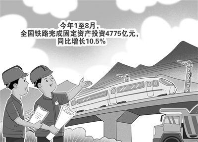 今年以来,全国多地铁路项目建设持续推进,取得新进展。记者从中国国家铁路集团有限公司获悉,今年1至8月,全国铁路完成固定资产投资4775亿元,同比增长10.5%,现代化铁路基础设施体系加快构建。(9月11日 新华社)□朱慧卿