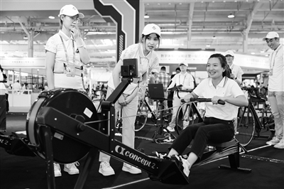 “我们依托自主研发的数智竞技系统,实现了跨时空竞技,将数智骑行、划船、高尔夫等创新项目与数字孪生、人工智能、感知交互技术深度融合,构建长安街、首钢园等特色虚拟赛道,为参赛者带来前所未有的沉浸式健身体验。”展区工作人员介绍。