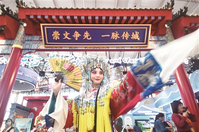 2024年中国国际服务贸易交易会文旅服务专题展近日在首钢文创园9号馆举行,东城展区以“崇文争先 一脉传城”为主题,汇聚36家企业参展,让古都气象在科技的流光溢彩中焕发时代光彩。人工智能、数字文物、VR交互、3D互动、数字人全息影像等前沿科技,如同时空之钥,引领公众踏上文化之旅。本报记者 边磊 于佳 摄影报道
