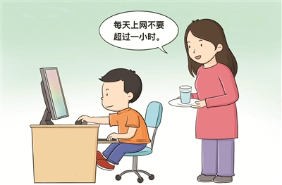 儿子对互联网世界充满好奇,经常使用平板电脑和电脑浏览网页、玩游戏、观看视频。我认为在信息时代一味阻止孩子上网没有用,家长应该以身作则,为孩子树立科学健康上网的榜样。