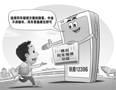 记者24日从中国国家铁路集团有限公司了解到,为了给旅客出行提供更多选择,铁路12306手机App和网站推出同车接续功能。据铁路12306科创中心相关负责人介绍,旅客在查询车票后,点击“中转”标签,系统在提供不同车次换乘方案的基础上,可将能组合的同一列车不同区段的两段同席别或不同席别的剩余车票,组合形成该车次的同车接续方案,供旅客选择。(9月24日 新华社)□王琪