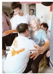 近日,陕西。全家团圆的时候,孙女提议让奶奶用沾满颜料的手给家人来一个大大的拥抱,之后就会在T恤上留下“爱的印记”。于是,一家人相继和老人拥抱,记录下这一幸福时刻。
