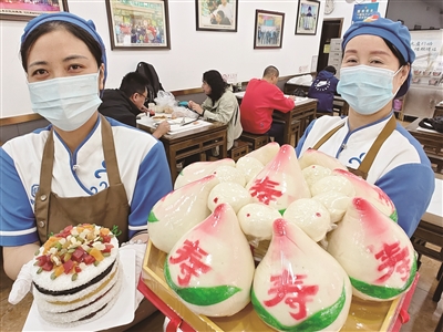 10月11日是重阳节。记者昨天从北京老字号餐企了解到,寿桃、重阳糕、长寿面已经开启了热销模式,餐厅的重阳宴、寿宴预订也十分火爆,多家门店的包间已经基本订满,多家门店还推出了敬老菜品。记者在护国寺小吃总店看到,前来预订、领取重阳糕的顾客已络绎不绝,不少家庭一订就是两份起步。