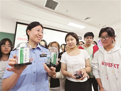 近日,利康戒毒所民警走进中央民族大学(丰台校区),通过仿真毒品、视频、以案说法等方式为该校大学生讲解禁毒知识以及麻精药品滥用后对身体的伤害。本报记者 孙妍 摄影报道