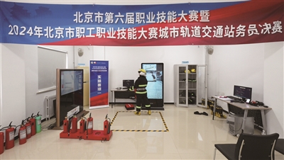 这是记者在北京市第六届职业技能大赛暨2024年北京市职工职业技能大赛城市轨道交通站务员决赛上看到的一幕。此次比赛由北京市总工会、北京市人力资源和社会保障局主办,北京市总工会职工服务中心、北京市职工技术协会、北京地铁公司工会承办,来自全市城市轨道交通领域的业内高手云集北京地铁技术学校展开技能比拼。
