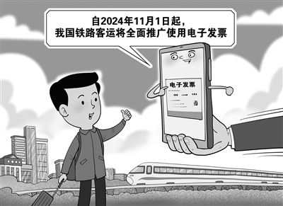 税务总局、财政部、国铁集团18日联合对外发布公告,自2024年11月1日起,在我国铁路客运领域推广使用全面数字化的电子发票——电子发票(铁路电子客票)。旅客不再需要打印铁路车票(纸质报销凭证),出行和报销更便利。(10月18日 新华社)