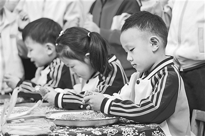 10月16日,在山东省青岛市李沧区青峰路幼儿园,小朋友参加搓玉米比赛。当日是世界粮食日,各地开展主题教育活动,增强孩子们爱惜粮食、节约粮食的意识。(10月18日《工人日报》)