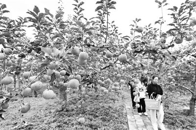 到昌平崔村摘苹果、品尝苹果已经成了不少北京市民每年秋天的休闲新选择。相关负责人介绍,近年来,崔村镇以都市农业、现代林业、休闲观光、农文旅体商融合发展为抓手,大力发展绿色苹果产业,打造苹果特色小镇。活动上,崔村镇发布了“崔村镇全域苹果采摘旅游图”及三天旅游路线,涵盖真顺苹果宴、网红咖啡、特色主题民宿等。