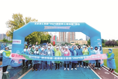 近日,北京建工集团工会职工健步走协会在太阳宫公园举办“2024秋季职工健步走”活动,近300名职工共享运动快乐。本报记者 边磊 通讯员 王莹 摄影报道