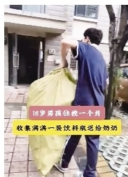 点评:这孩子一定是一位非常有爱心的阳光男孩,此外他内心也比较强大。一麻袋空瓶是对奶奶满满的爱。