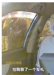 近日,山西大同。出租车司机接到一位胸前挂满勋章的老人,聊天中得知,老人今年93岁,曾参加抗美援朝战争,司机当即决定免单表达敬意,老人下车后还回了一个军礼。