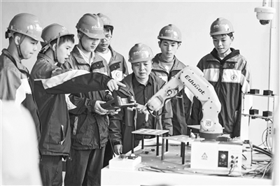 10月21日,贵州省铜仁市玉屏侗族自治县中等职业学校的老师指导学生进行工业机器人实操。近年来,该县大力发展职业教育,以就业市场需求为导向,鼓励学校与东西部协作企业、市场前景好的企业签订“订单式”职业教育人才培训,拓宽毕业生就业渠道。(10月23日《工人日报》)
