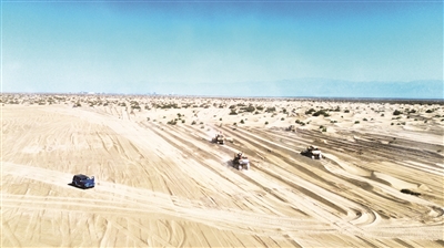 为了尽快启动项目建设,大家通力合作,原本千年未曾通行的无垠沙地,最终开辟出一条条穿越浩瀚沙海的畅通之路,为后续工程顺利开展奠定下重要的运输基础。“困难再大,也挡不住我们前进的脚步。”这是二标段团队共同的信念。