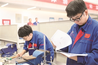 技能操作比赛赛场内,选手们站在操作台前,测量、划线、钻孔……紧张有序地忙碌着。按照比赛要求,选手们需在4小时内完成对压力容器、气瓶、油箱等零部件的调试、组装,最终完成一台微缩版动力系统模型。赛事裁判长告诉记者,这种比赛对精度的要求很高,即便是经验丰富的总体装配工,4个小时的时间也是很紧凑的,基本不容选手有失误。