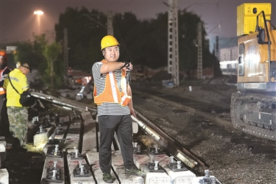 时针刚刚划过零点,中国铁路北京局集团公司北京工电大修段线路大修三车间道岔大修施工现场,梁洋洋紧握手电,射出的光亮逐一扫过抓机工程车的抓斗、机械臂、驾驶室、履带轮,完成上线前的大型机械状态检查,稍后他将迎来长达6小时的天窗作业,而这不过是全年233组换岔施工任务中的寻常一晚。