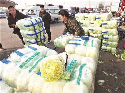 随着近期气温逐渐降低,冬储大白菜的销售逐步升温。昨天,记者从北京新发地白菜批发区看到,商户忙着打包分装,分装好的整包白菜堆放在售卖区,批发价格在0.45-0.6元之间。据商户介绍,目前正处于秋季蔬菜的供应模式,主要品种包括大白菜、圆白菜、芹菜、散菜花、西红柿、尖椒等。预计到11月下旬气温下降后,才是大规模购置冬储菜的时候。