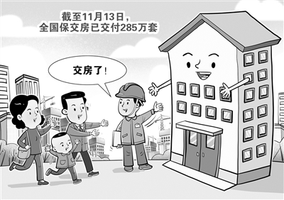 记者从住房城乡建设部了解到,全国保交房工作推进有力,截至11月13日,全国已交付285万套。住房城乡建设部相关司局负责人表示,为了更好地完成保交房任务,各地因城施策、创新举措,坚持高位统筹,通过加强政府调度、督促企业“瘦身自救”、激励银行融资、加大司法支持、分类处置等措施,层层压实责任,加快推进保交房。(11月14日 新华社)□朱慧卿