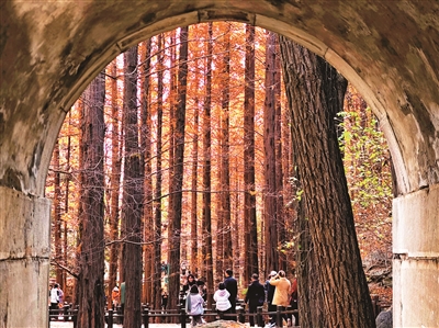 有着植物界“活化石”盛誉的水杉在初冬的季节里,褪去了青翠色彩转为火红的暖色。记者昨天在国家植物园水杉林看到,游客纷至沓来一睹美景。据悉,这里是北京种植面积最大的水杉林,蜿蜒的栈道、潺潺的溪水,挺拔高耸的水杉静静伫立两旁,展现出古朴的自然美,游人穿行期间,仿佛置身童话之中。