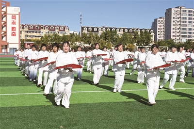 八段锦、太极扇、彩带龙……职工们身着统一服装,尽情展示八段锦的养生之美、太极扇的刚柔并济、彩带龙的绚丽多彩,参赛职工动作流畅、形神兼备,赢得评委一致好评。