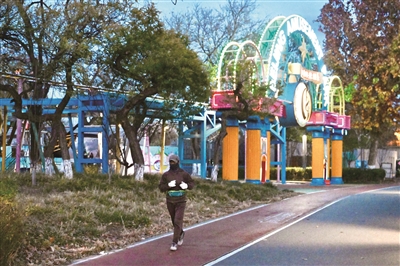 受持续冷空气影响,北京寒潮和大风蓝色预警中,未来几天大风降温,风寒效应显著。图为昨日傍晚,市民在龙潭中湖公园“全副武装”跑步。