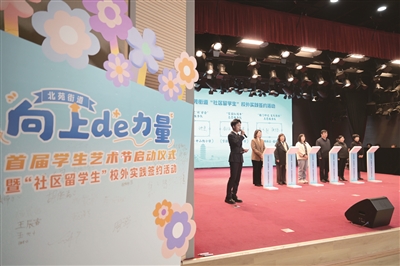 本报讯 (记者 彭程) 近日,“艺路花开 与你童行”北苑街道“向上de力量”学生艺术节启动仪式暨 “社区留学生”校外实践签约活动在首师大附中(通州校区)报告厅拉开帷幕,为学生搭建展示自我、放飞梦想的舞台,开启“家校政社”四位一体协同育人的新篇章。相关领导及辖区小学师生及家长等500余人现场参与活动。