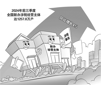 国家税务总局26日发布的数据显示,前三季度全国新办涉税经营主体达1257.8万户,同比增长4%。新办涉税经营主体是指已办理注册登记并且首次到税务机关办理税种认定、发票领用、申报纳税等涉税事项的经营主体,该主体数量是衡量经济活力和市场信心的重要指标之一。(11月26日 新华社)□王琪