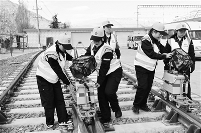 青藏铁路沿线环境恶劣,高海拔缺氧、冻土等问题给探伤工作带来极大困难。然而,“女子探伤班”的队员们从未退缩。无论是寒风凛冽还是烈日炎炎,她们都坚守岗位,根据年度探伤任务和计划,推着沉重的探伤设备,沿着两条铁轨一步一步前行,为每一寸钢轨做着细致入微的“体检”。为了提高探伤的准确性,她们还常常在下班后聚在一起,研究探伤数据,交流经验心得。在她们看来,这个班组无疑是她们另一个温暖的“大家庭”,相互扶持、相互鼓励。